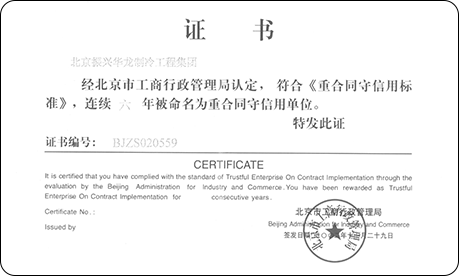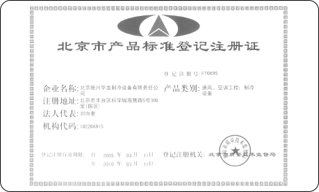 2005年,公司制冷設(shè)備產(chǎn)品被北京市質(zhì)量技術(shù)監(jiān)督局授予“北京市產(chǎn)品標(biāo)準(zhǔn)登記注冊(cè)證”。